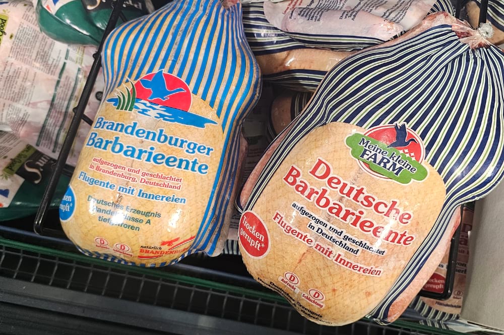 Geschlachtet werden die Enten bei Dithmarscher Geflügel in Brandenburg. Produkte wie die “Brandenburger Barbarieente” dieses Schlachtunternehmens sind unter anderem bei Kaufland zu finden.