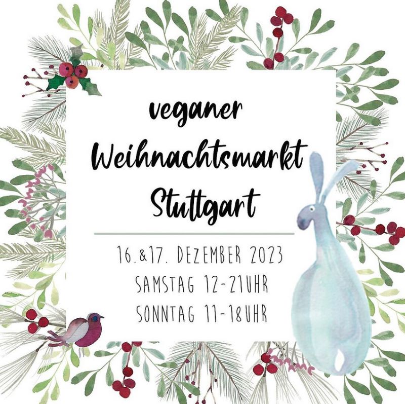 Auch in diesem Jahr findet wieder der Vegane Weihnachtsmarkt Stuttgart statt, diesmal bei der Kulturinsel Stuttgart (Marga-von-Etzdorf-Platz, Bad Cannstatt).
