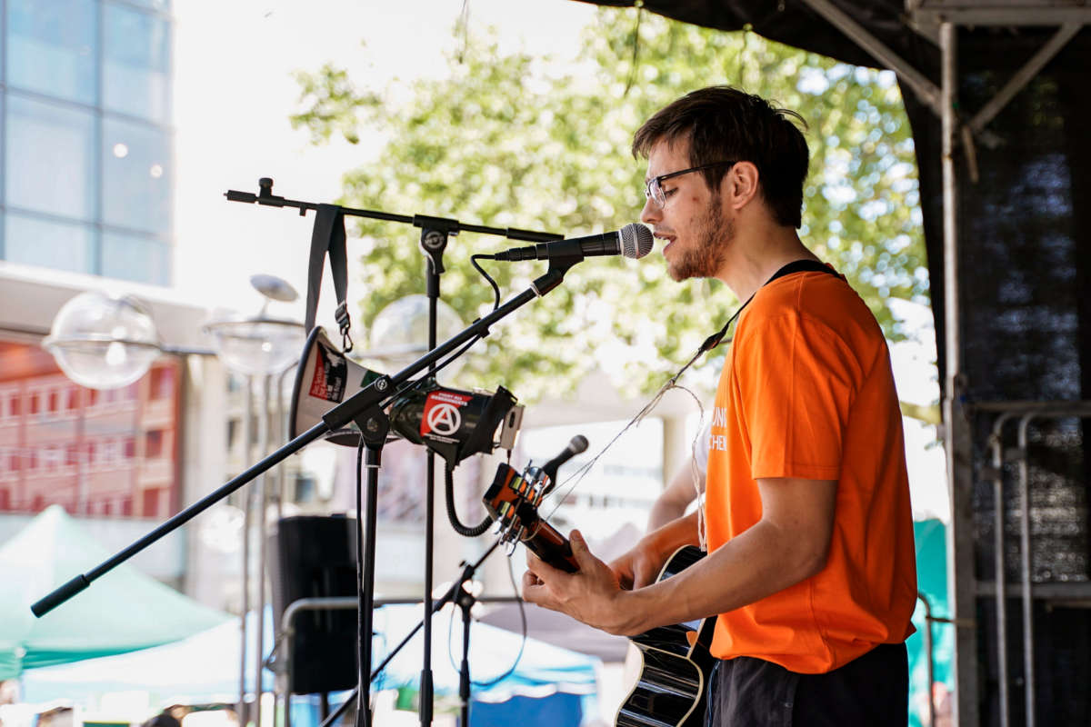 Die ganze Vielfalt der veganen Lebensweise präsentierte der Dortmunder Vegan Street Day (VSD) am Samstag, den 4. August 2018. An über 40 Ständen rund um den Reinoldikirchplatz hatten Gäste Gelegenheit zum Schlemmen, Einkaufen und Informieren. Auf einer Bühne wurde ein abwechslungsreiches Programm mit Live-Musik und spannenden Vorträgen geboten. Unter anderem gab Jürgen Foß, Mitbegründer des Lebenshofs Land der Tiere, Einblicke in das Leben von Hühnern auf Lebenshöfen und in der „Nutztierhaltung“. Andreas Schröter vom fairen Online-Shop Kong-Island klärte über die Arbeitsbedingungen und Umweltbelastung in der heutigen Bekleidungsindustrie auf. Für musikalische Unterhaltung sorgten die Kafkas, Valentina Rubini und Neo C. Ein eigener Kinderbereich komplettiert das Angebot.